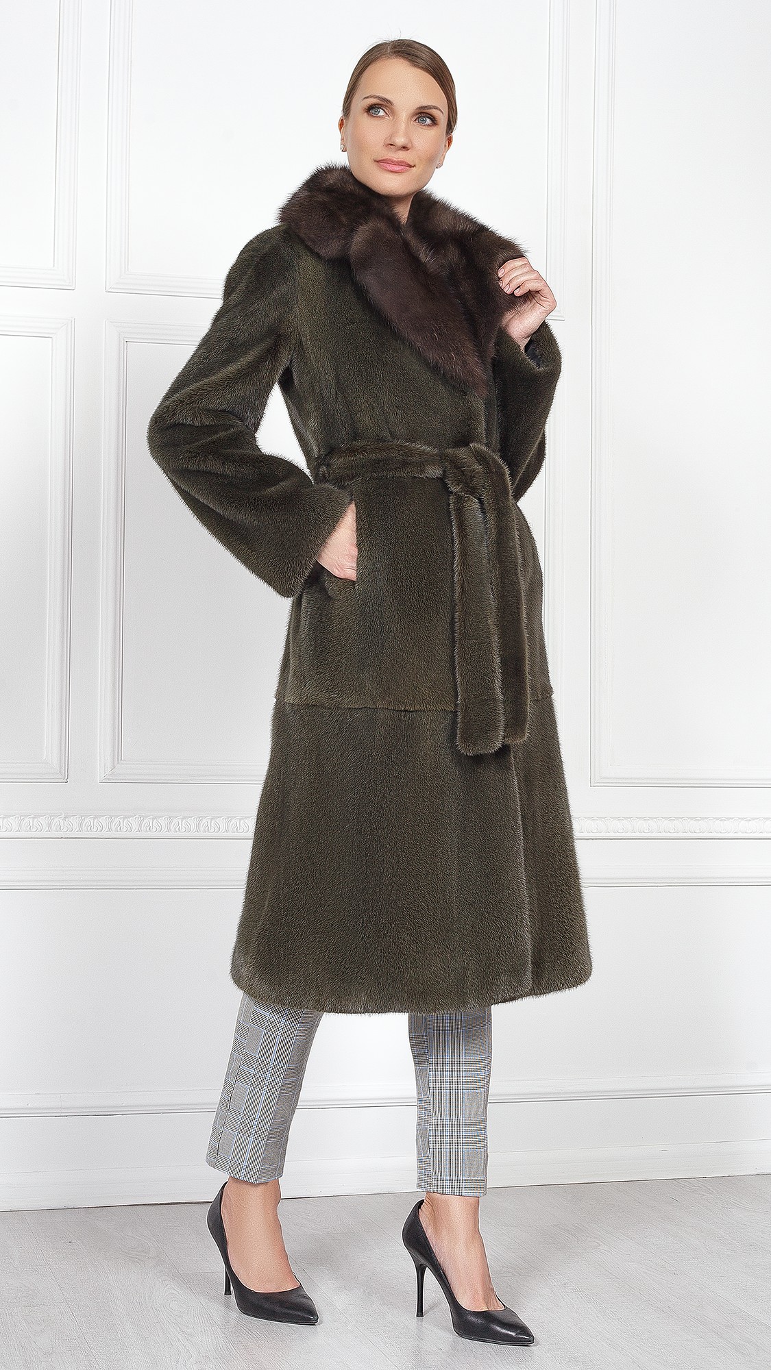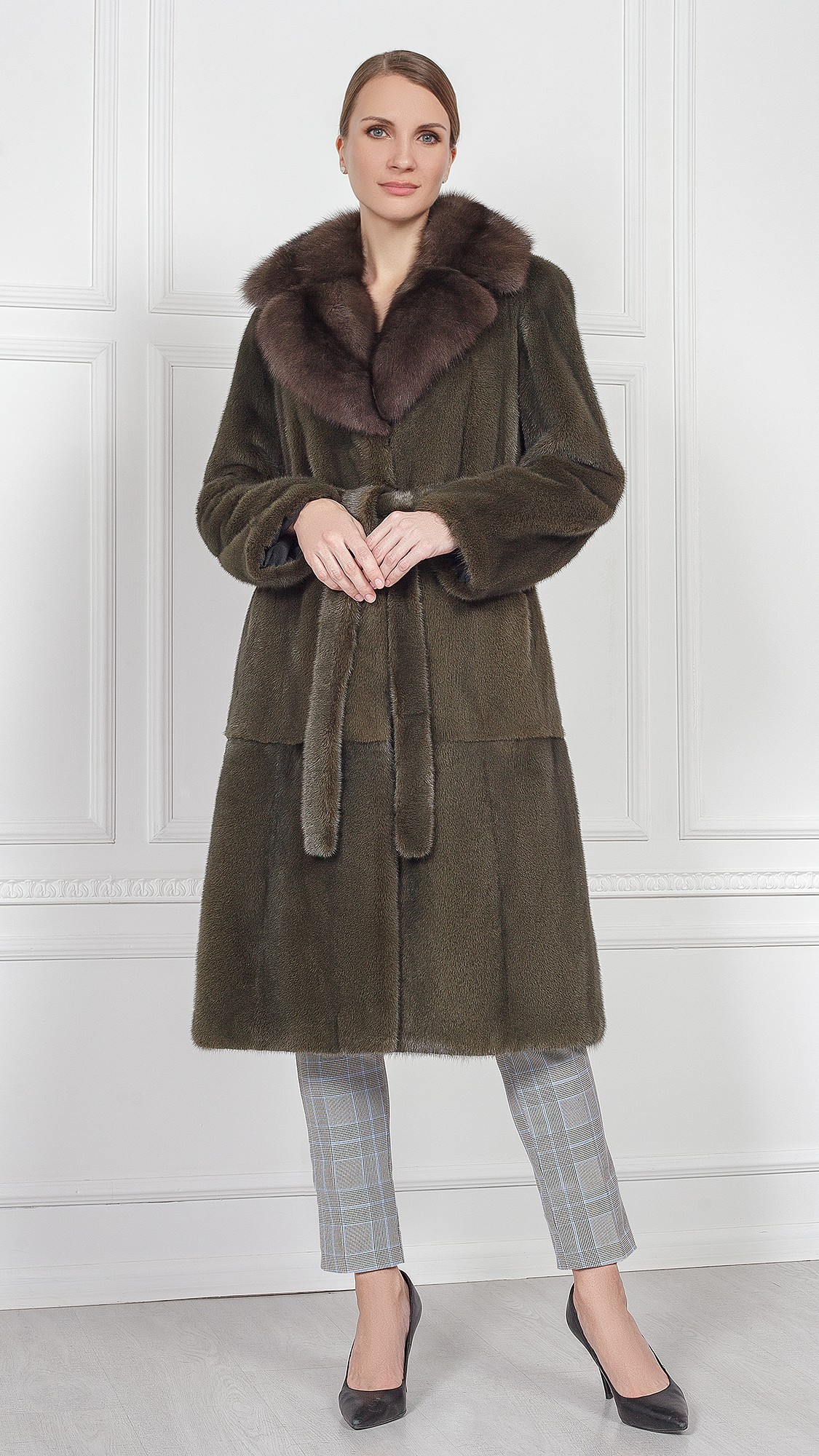 Шуба из меха норки, отделка соболь