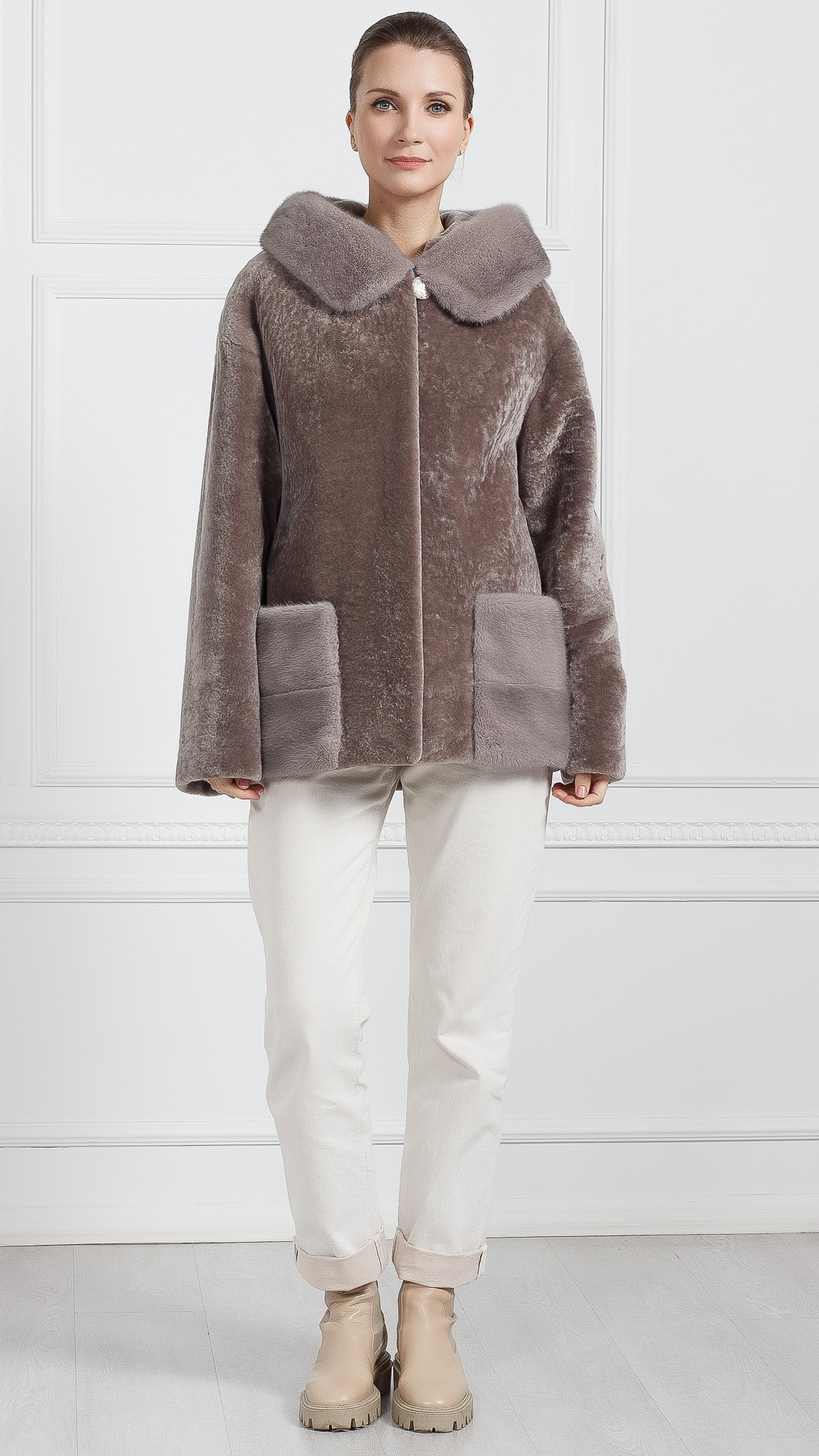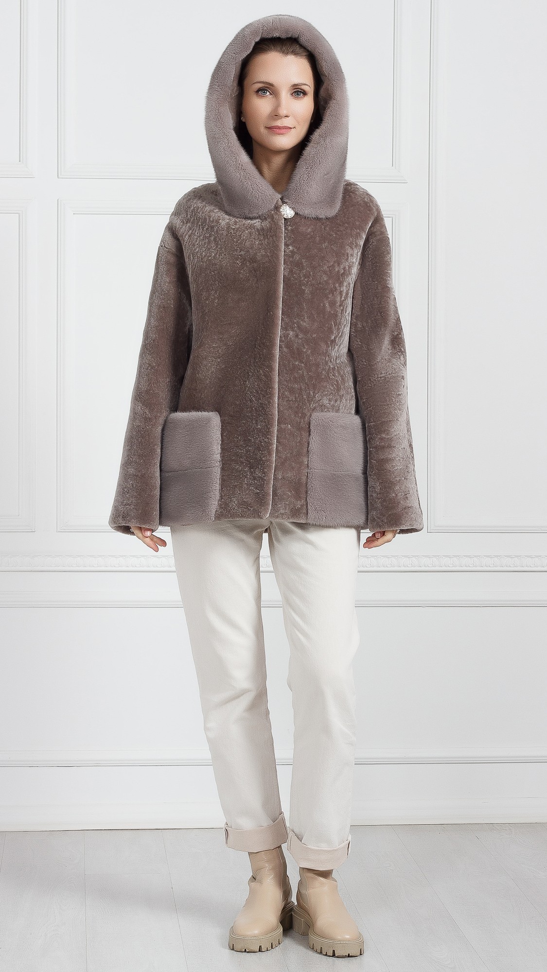 Шуба из овчины, отделка норка