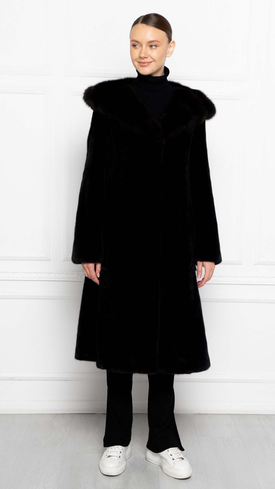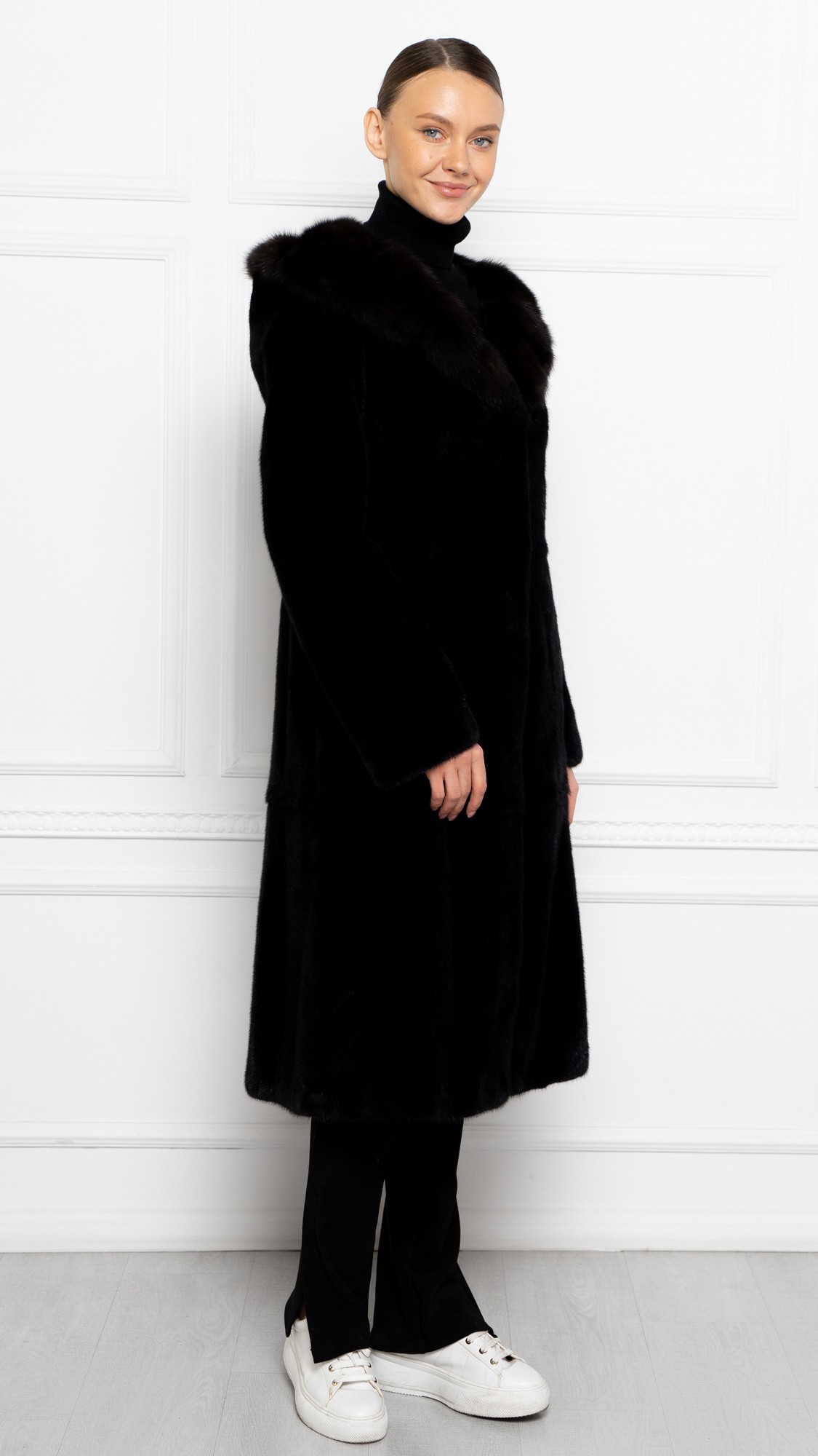 Шуба из меха норки, отделка соболь