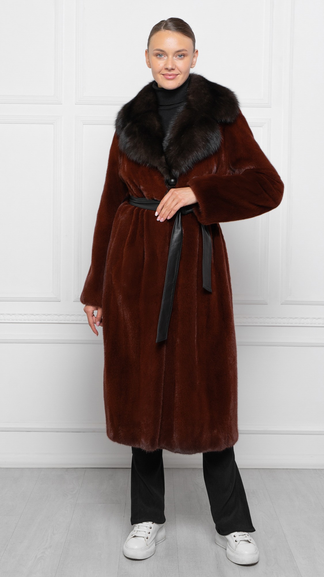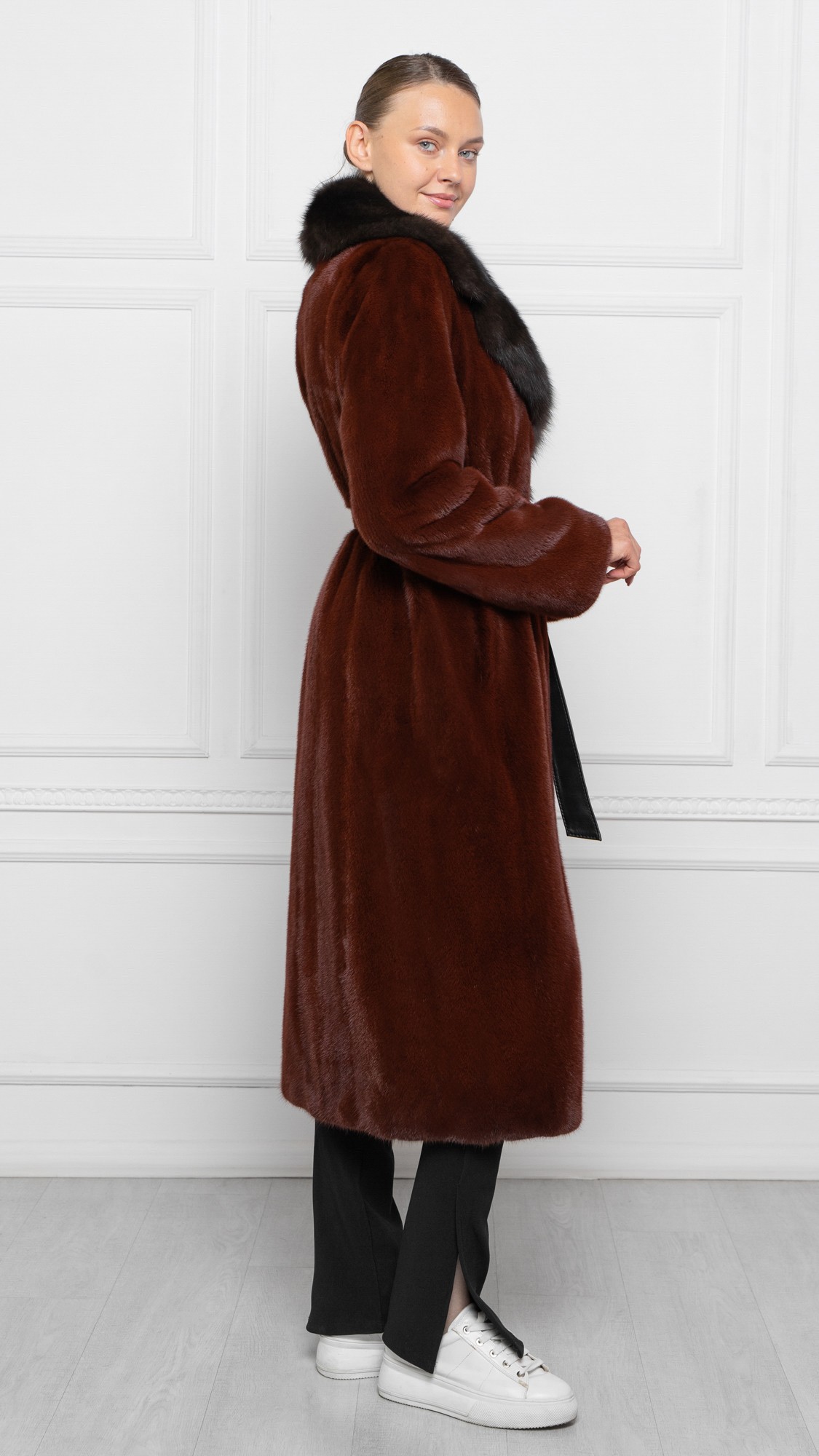 Шуба из меха норки, отделка соболь